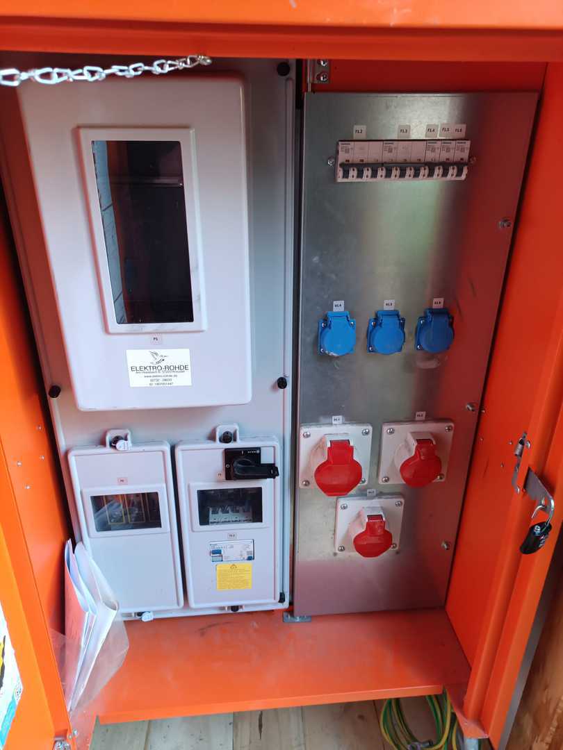 Einen solchen Baustromverteiler können Sie bei uns günstig mieten. Dabei kümmern wir uns auch um die Beantragung des Zählers, den Anschluss an das öffentliche Stromnetz (in Zusammenarbeit mit Ihrem Netzbetreiber) sowie um die vorgeschriebenen monatlichen Überprüfungen, damit im rauen Baustellenalltag die Sicherheit stets gewährleistet bleibt.